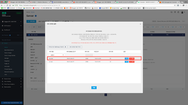 aws ec2와 다르게 ncp server가 특별한 점 중에 하나가 ec2 security group에서 22번 ssh포트를 열면 해당 인스턴스의 key파일로 직접 ssh에 접속할 수 있었는데, ncp는 이 방식을 포트 포워딩 설정을 통해 접속할 수 있는 ip와 port를 따로 생성해주고 있습니다.