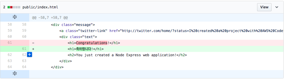 index.html에서 'Congratulations'를 '축하합니다' 라는 문구로 변경하고 커밋을 했습니다.