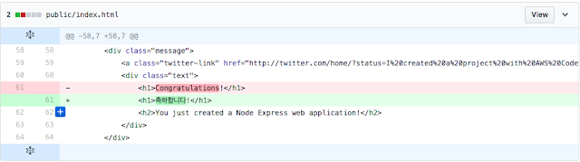 그렇다면, CodeStar의 큰 강점인 연속 배포 및 빌드를 확인해보기 위해서 github에서 저 index.html을 수정하여 변경적용이 되는지 확인해보겠습니다.