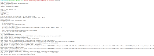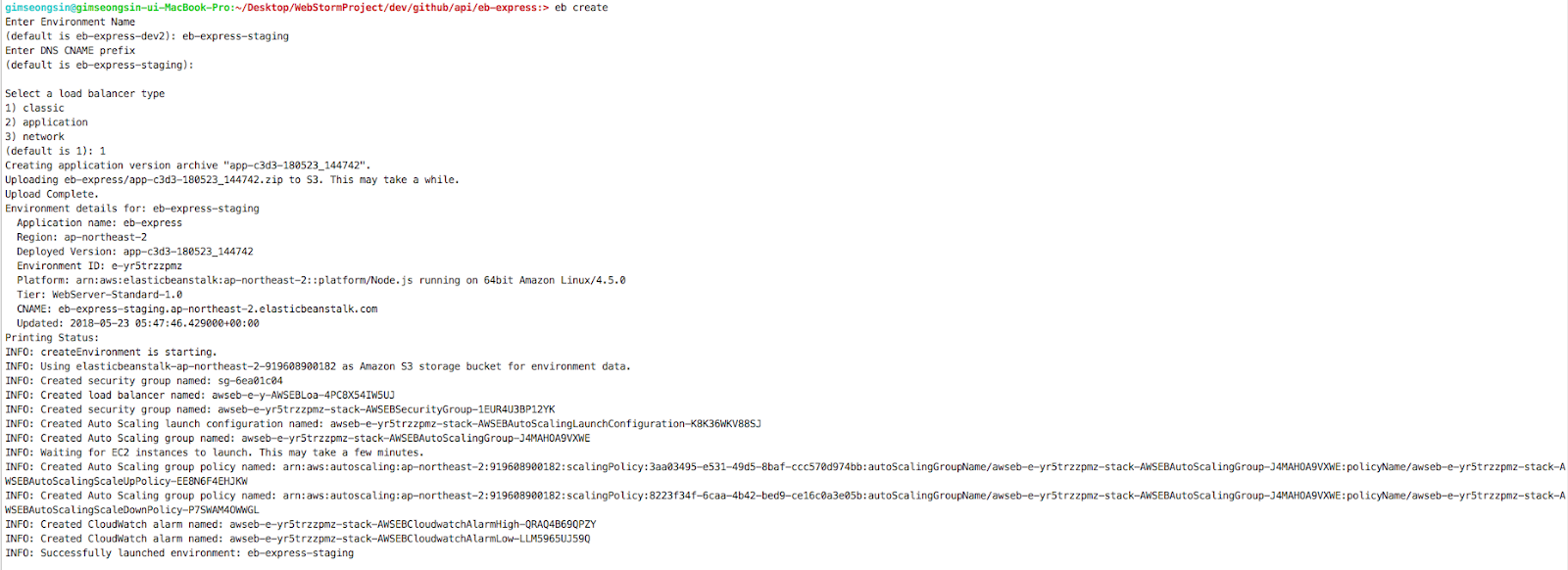 create는 말 그대로 새로운 환경을 만드는 명령어입니다. 사용법은 단순하게 eb create 입니다.