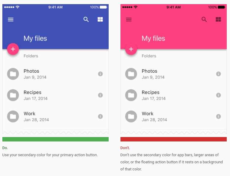 앱에서 기본적으로 스타일, 색상 정의를 어떻게 하는 게 좋은지, 어떤 방식의 디자인을 권장하는지 매우 잘 정리된 문서입니다. 앱 디자인을 처음 시작할 때 참고로 보시면 좋을 것 같습니다.
