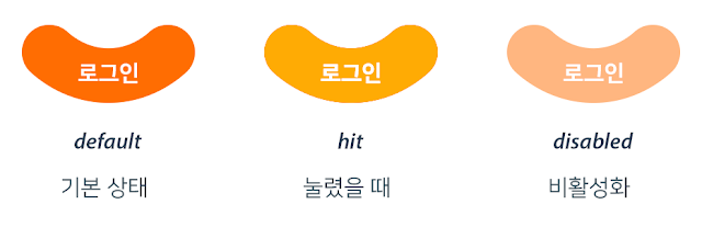 단순한 사각형, 원형 같은 버튼의 경우 코딩으로 작업이 가능하지만 특별한 모양의 버튼의 경우 이미지를 잘라드려야 하는데요, 버튼을 자를 때는 기본적으로 세 가지 상태에 대해서 만들어 주셔야 합니다. (경우에 따라 한두가지 필요없는 게 있을 수 있구요)