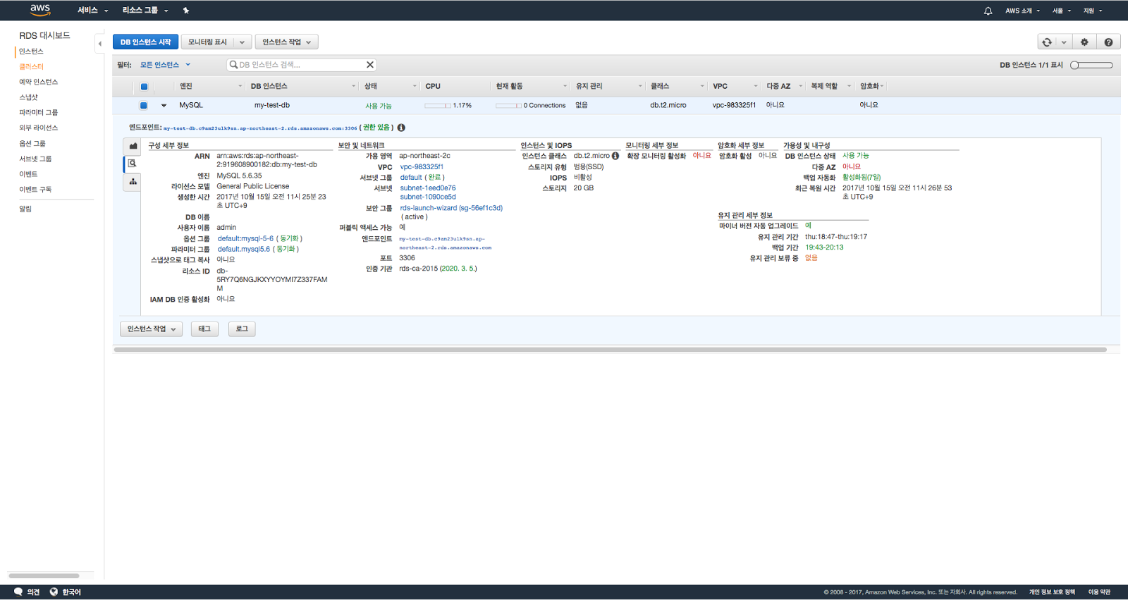 - VPC 보안 그룹 : default