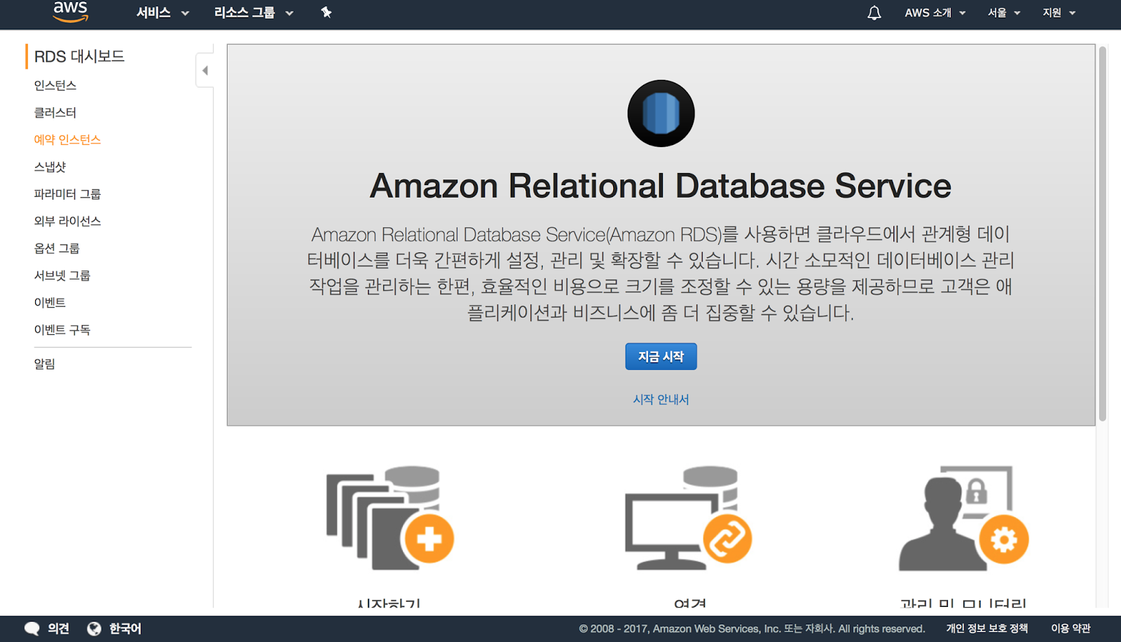최근에 AWS Console이 한글화되었으므로 한글 콘솔에서 설치를 진행해보겠습니다.