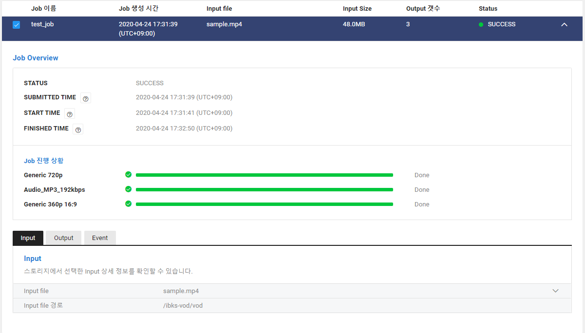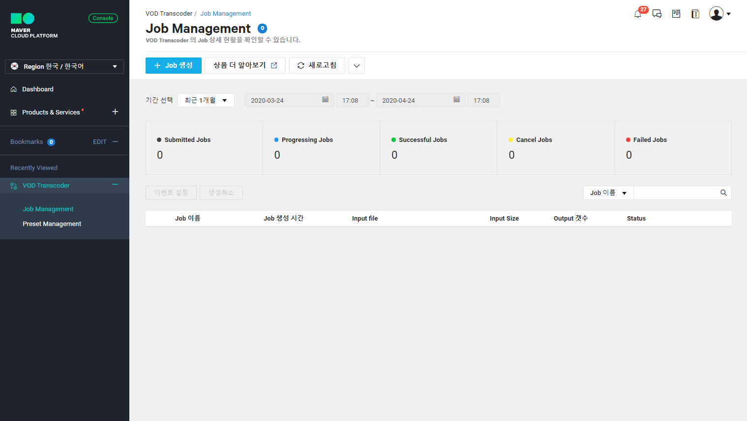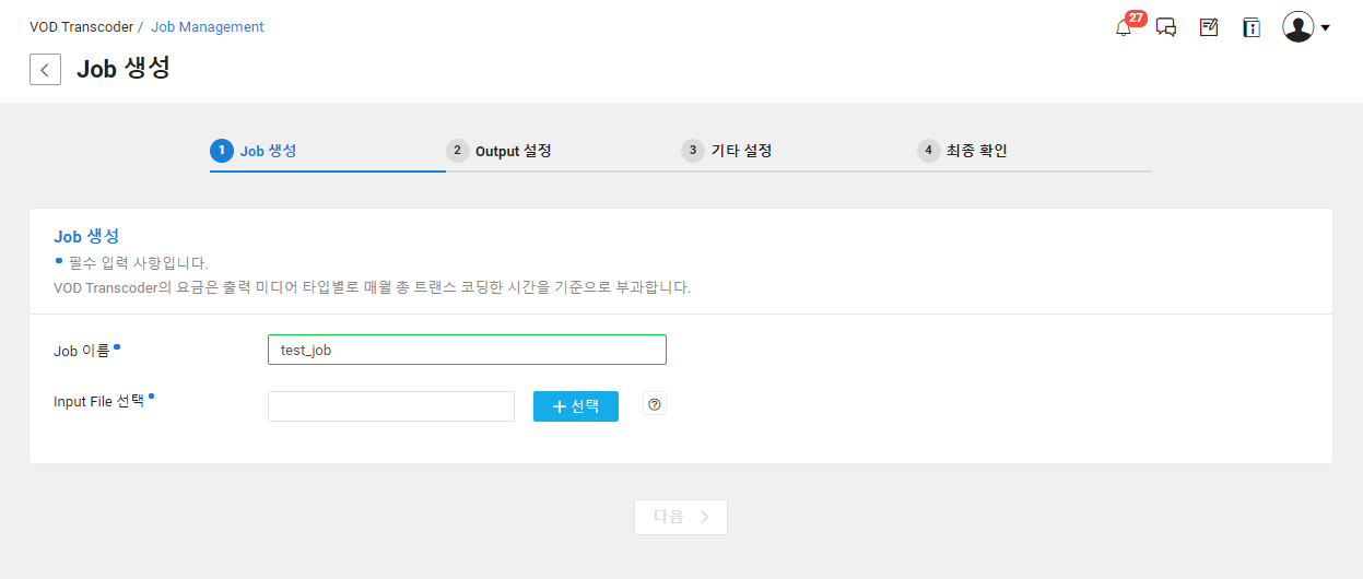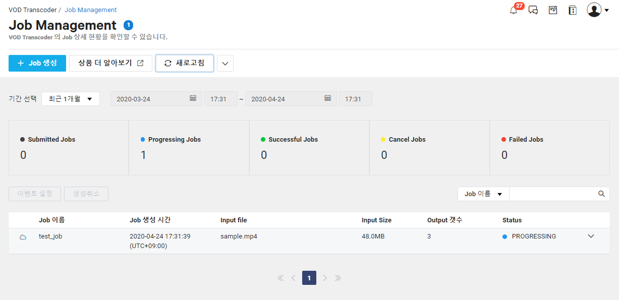 Media > VOD Transcoder > Job Management 메뉴로 이동합니다.
