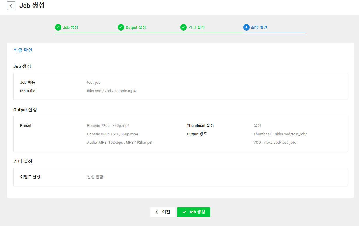 이제 최종적으로 설정을 확인하고 [Job 생성] 버튼을 선택합니다.