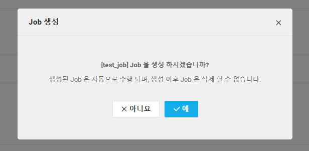상단 [Job 생성] 버튼을 클릭합니다.