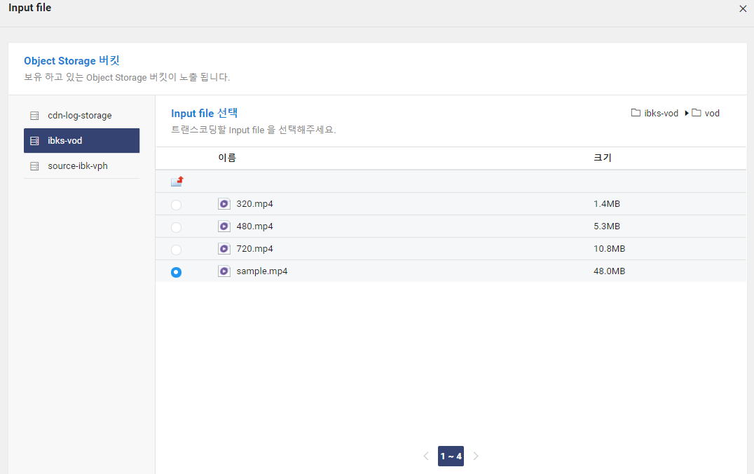 Object Storage 에 등록된 파일만 선택 가능하므로 지난 포스팅에서 등록했던 Sample.mp4 파일을 선택해서 등록해 보겠습니다.