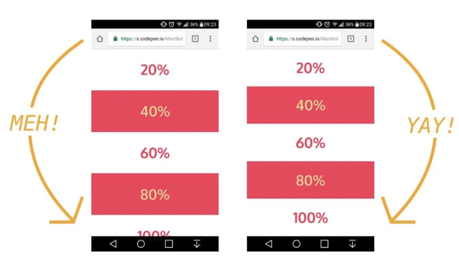 그런데 모바일 브라우저에서 주소창에 대고 화면을 스크롤하면 url bar (주소창)이 숨겨지면서 브라우저 높이값이 바뀌는 수가 있습니다.