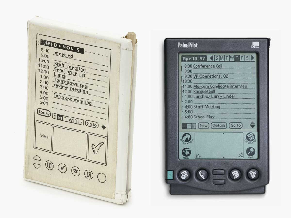 그는 먼저 시제품을 만들지 않고, 그저 나무토막에 화면을 인쇄해서 붙이고, 나무젓가락을 깎아 스타일러스를 만들었습니다. 그리고 몇 달 동안 셔츠 주머니에 넣고 다니면서 컴퓨터인 '척' 했습니다.