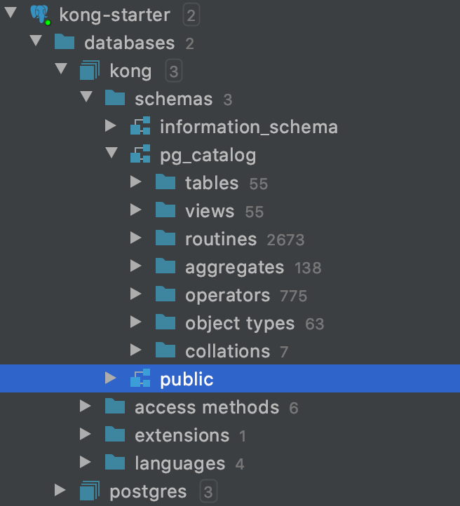 19809b4df118 postgres:9.6 "docker-entrypoint.s…" 34 seconds ago Up 33 seconds 0.0.0.0:5432->5432/tcp kong-database