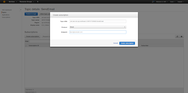Protocol 을 Email로 설정하고 Endpoint 에 알림을 받을 메일주소를 입력하고