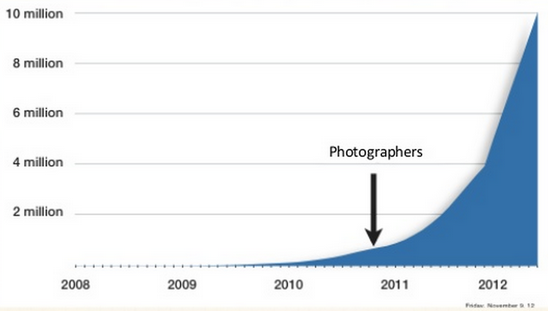 에어비앤비가 숙소 주인과 프로 사진 작가를 매칭하는 프로그램을 본격적으로 시작하는 2010년 말부터는 급격하게 성장하는 것을 볼 수 있습니다.