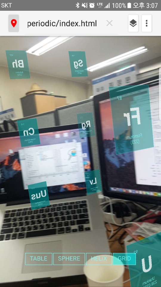 샘플 예제 중에 three.js 로 만들어진 원소기호 카드들이 둥둥 떠다니는 걸 보고 우리 플래닝 포커에도 도입하면 좋겠다고 생각해서 이번 기술검토를 시작하게 되었습니다.